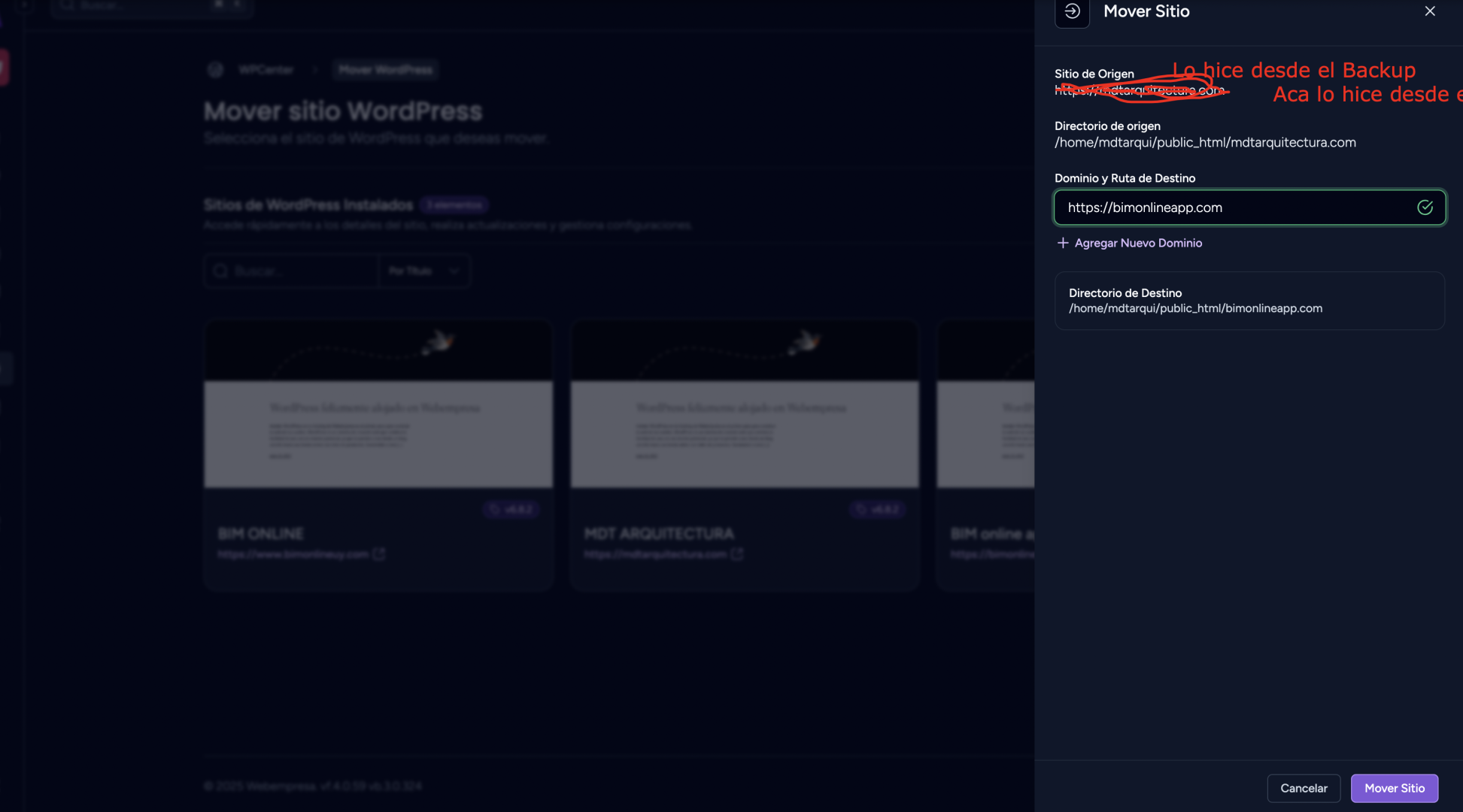 @bruno-vichetti Hola. Comencé un sitio desde 0 dejando el sitio original y despues desde el Cpanel mover el sitio hacia el dominio definitivo www.bimonlineapp.com