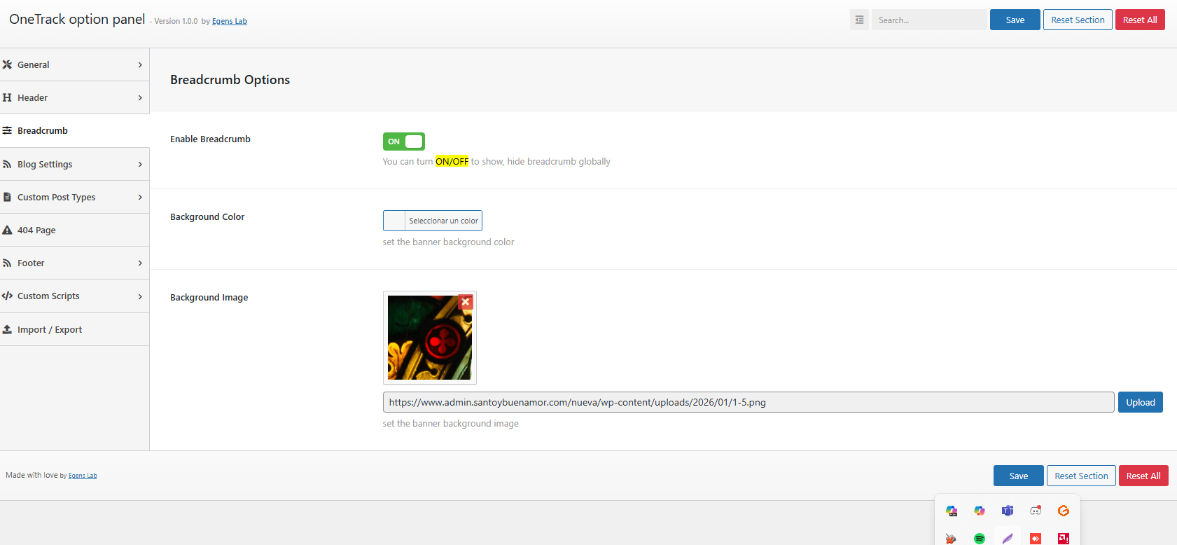https://www.admin.santoybuenamor.com/nueva/articulos/hola en el template tiene braedcumbs t puse una imagen y la veo en los blogs ahora en la pagina no veo donde puedo cmabiarla
