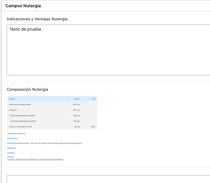Hasta ahora estoy probando con la plantilla de un tipo de producto. DEjo el ejemplo. En las casillas de abajo deberia aparecer el contenido dinámico. Ejemplo donde trabajo
