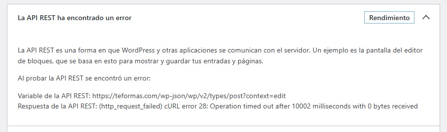En la herramienta de “Salud del sitio” también se muestra este mensaje:
