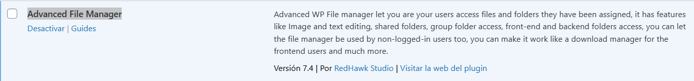 En este caso puedes cofirmarnos si es este plugin el que tiene inconvenientes → https://wordpress.org/plugins/file-manager-advanced/