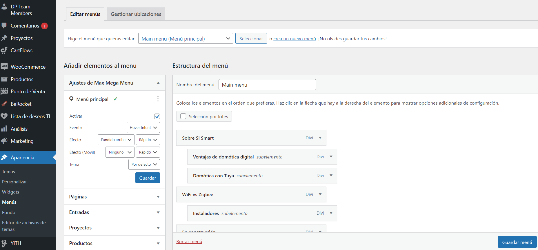 en esa web estamos haciendo el menú, pero nada no se muestra. y nada, hemos borrado caché y nada.