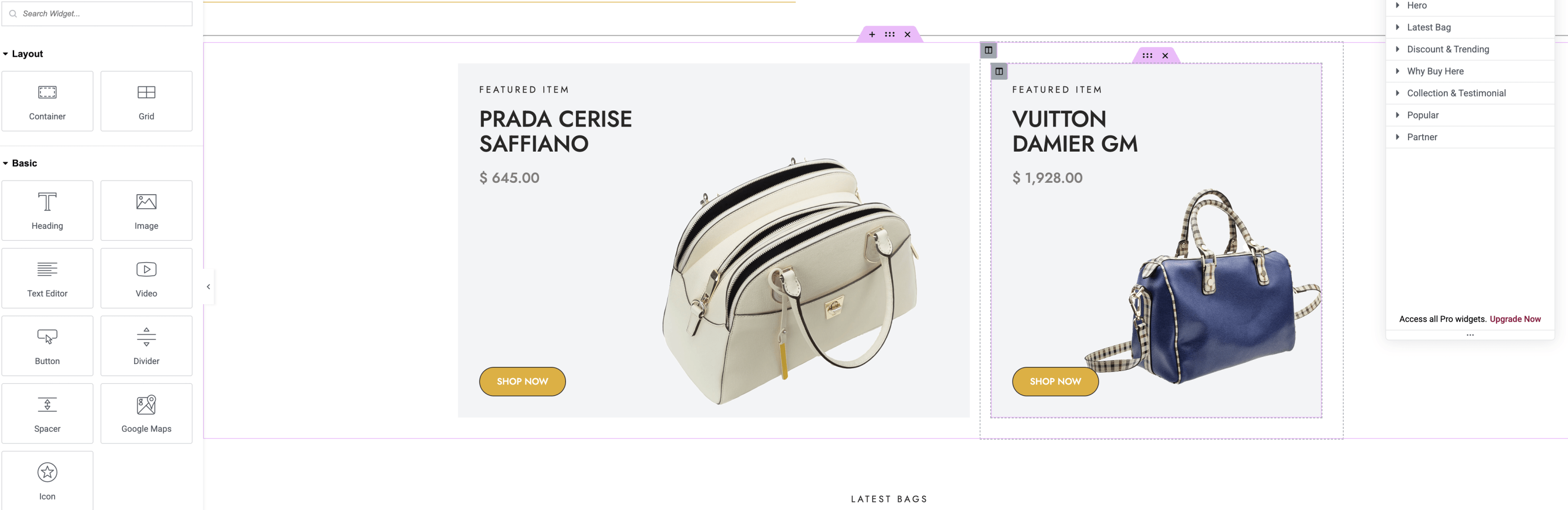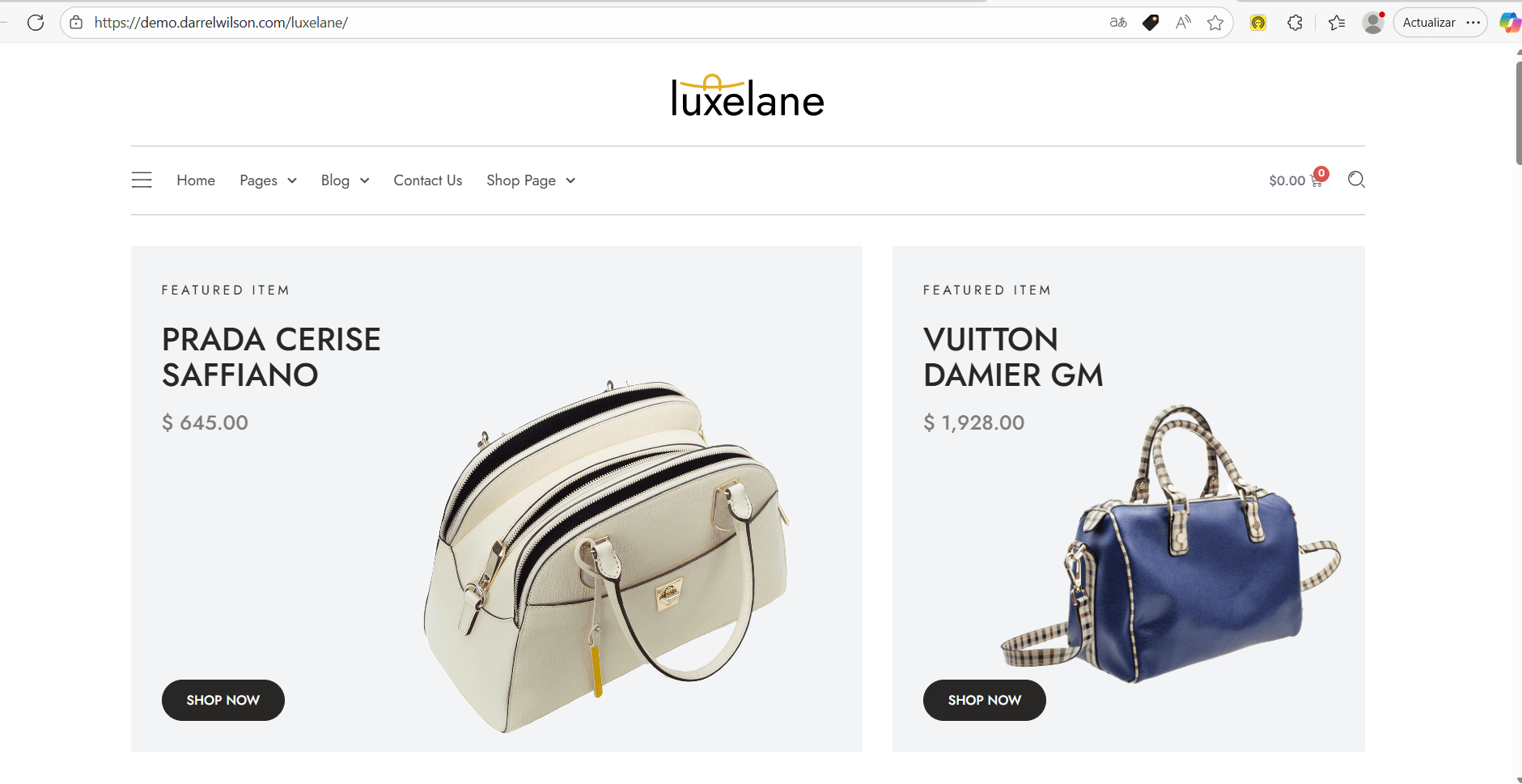 La plantilla web que deseo importar es la siguiente: LuxeLane – Luxury Bags WooCommerce Elementor Template Kits