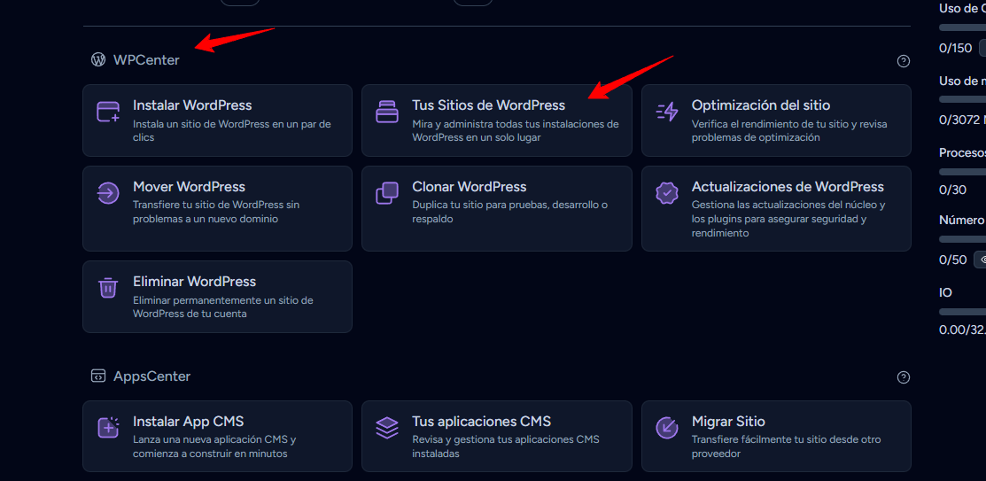 Una vez eliminado en el mismo apartado puedes instalar un nuevo WordPress y seleccionar el subdominio o directorio debe se instalará