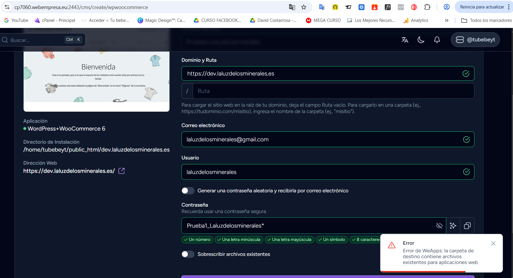 Le he dado a crear como pone en el siguiente paso, he elegido el subdonio donde lo tenía, y aparecía con www. y sin las www. pero me sale el siguiente error en la parte de abajo.