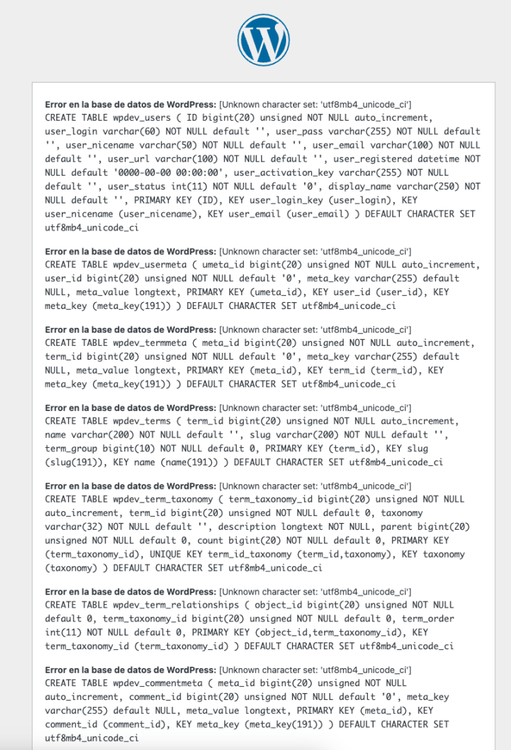 Es posible que esté faltando algo de nuestro Wordpress o está mal configurado y por eso no se pueden crear las tablas?