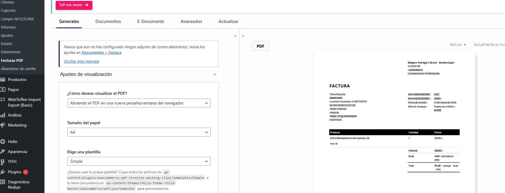 Estoy utilizando el plugin PDF Invoices & Packing Slips for Woocommerce. No sé por qué pero al descargar los albaranes y facturas no se visualizan correctamente. En principio tiene la configuración de base. ¿A qué se debe esto?