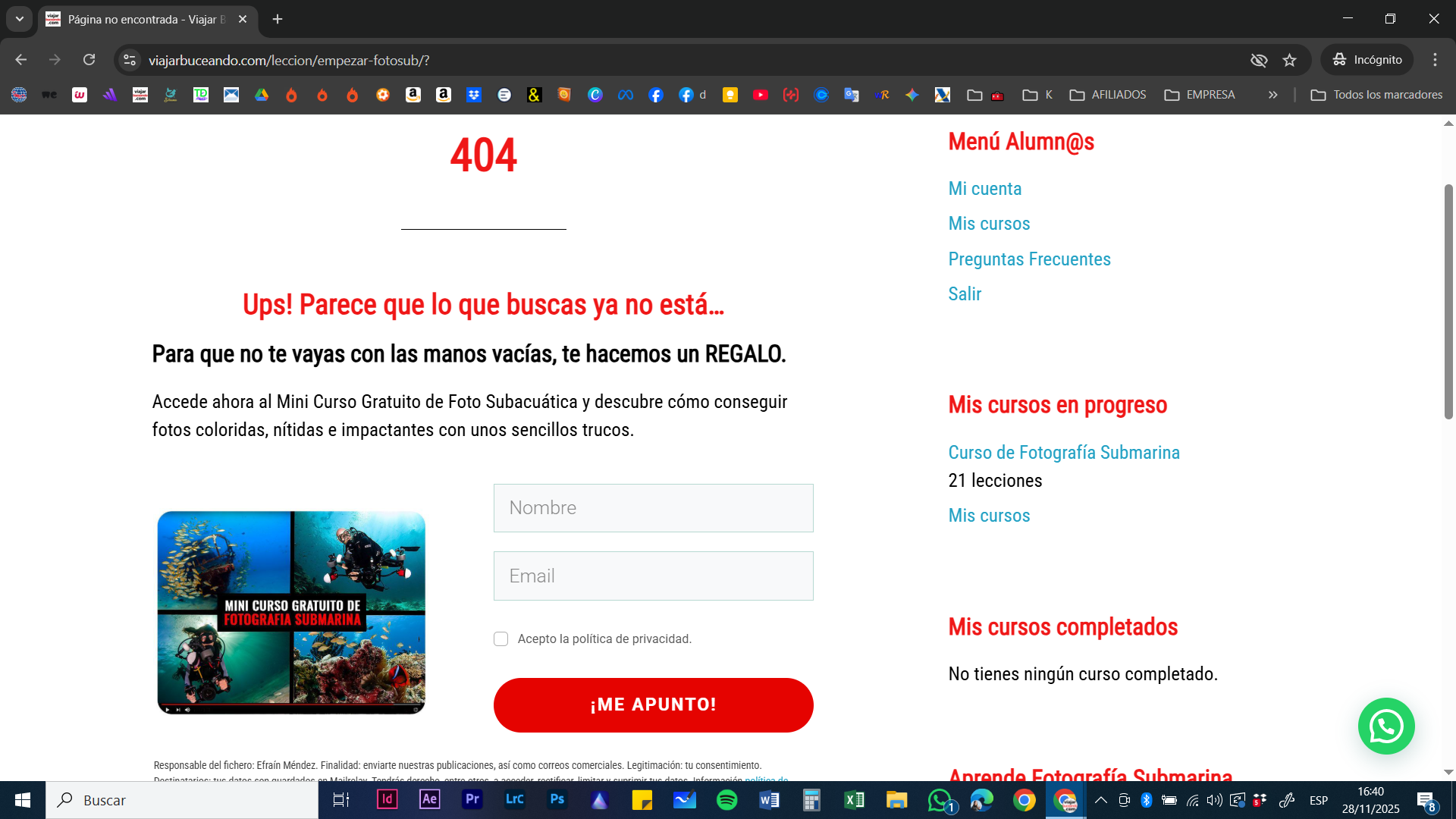 En el enlace que lleva a la siguiente lección donde pone "empezar en la fotosub" en vez de lllevar al enlace correcto redirige a una 404.