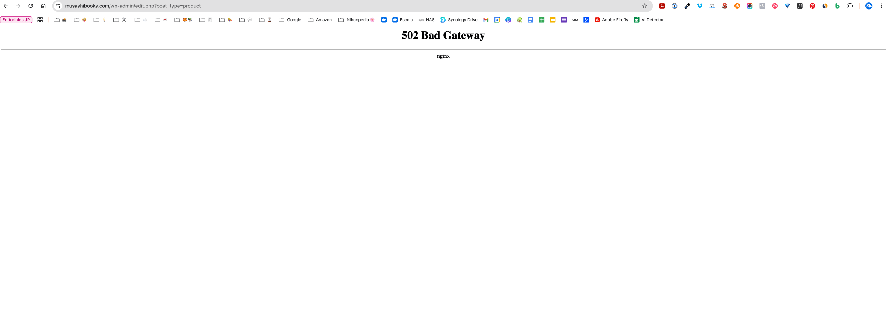 Acabo de instalar Wocommerce en mi página web y no hay manera de que funcione correctamente. El wizard-setup no funciona, así como otras secciones, como la de productos, pagos, etc. Se queda dando vueltas y vueltas hasta salir el típico error 502 bad gateway.
