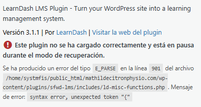 Se ha desactivado y no lo puedo reactivar porque me pone que ha provocado un error fatal.