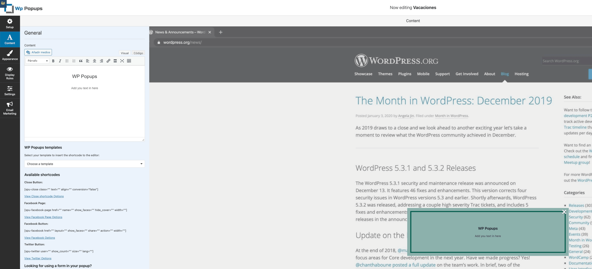 -> https://es.wordpress.org/plugins/wp-popups-lite/