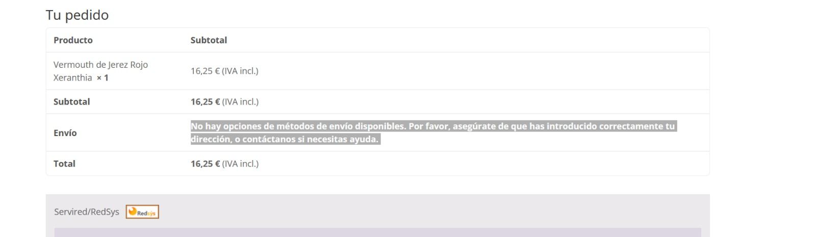 Añades el vermouth al carrito, le das a realizar pedido, estableces la dirección en el carrito, le das a finalizar compra. La primera vez bien.