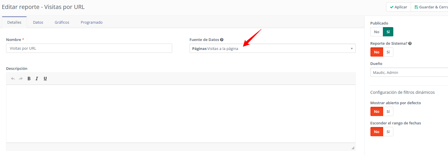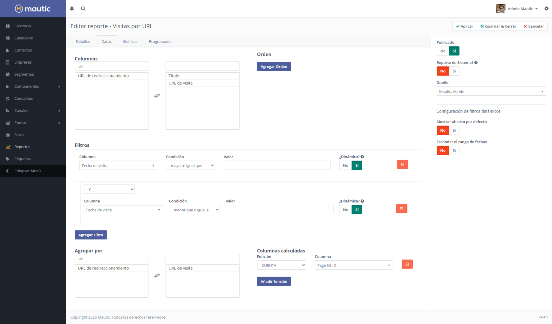 Si quieres un reporte mas especifico debes ir jugando con las opciones que te indica Mautic, puedes revisarlo mas a detalle en su documentacion oficial → https://docs.mautic.org/en/5.2/reports/reports.html