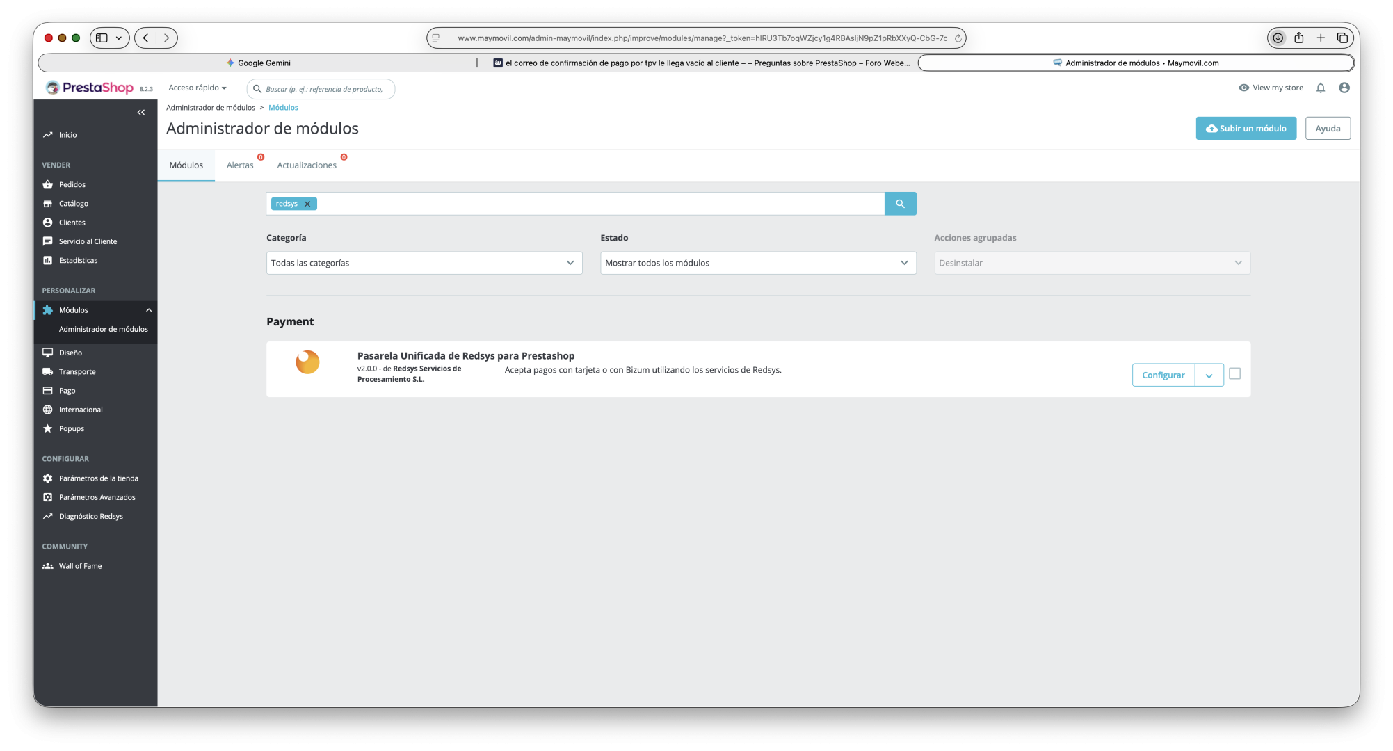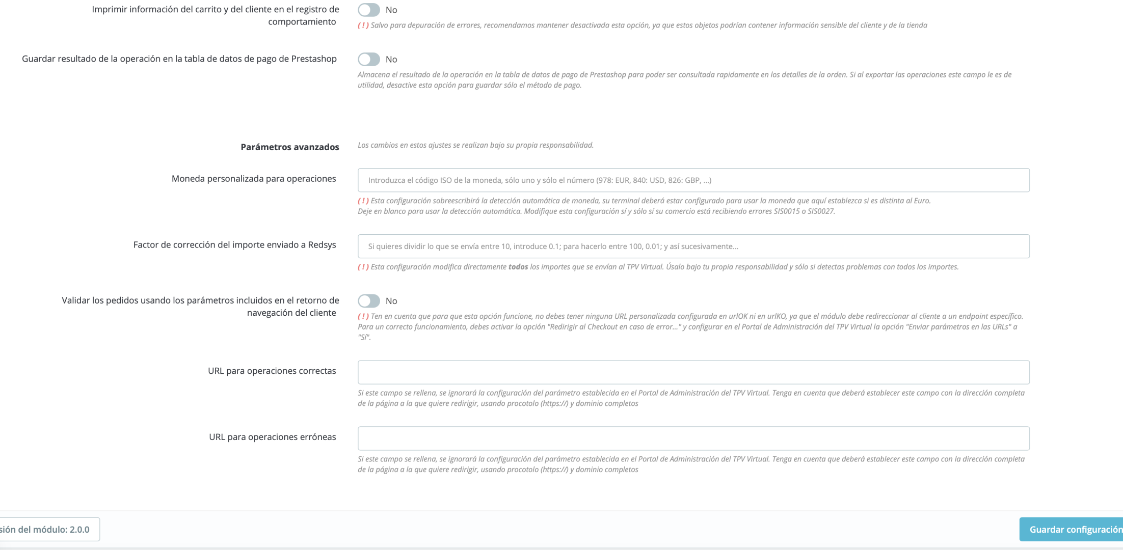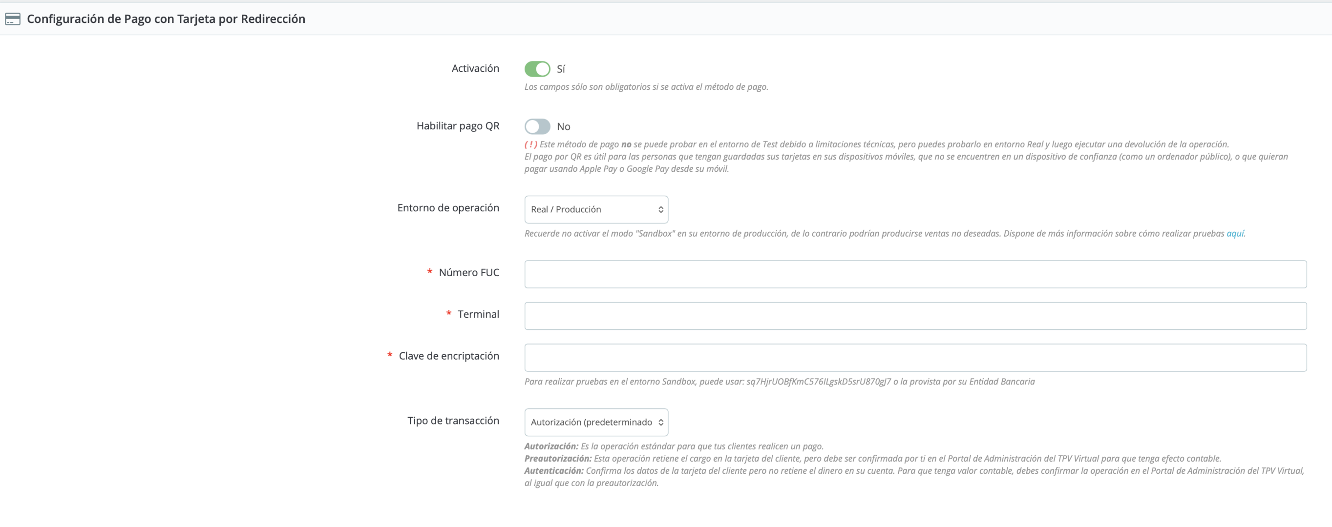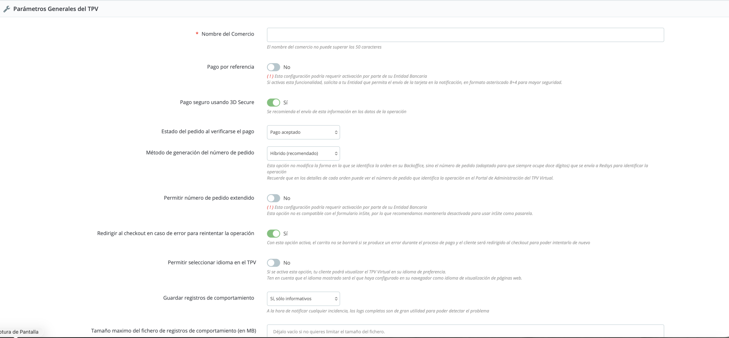 te adjunto capturas con la configuración del módulo q ademas es la misma q usábamos en la anterior instalación 1.7. ademas del pago por redirección también tenemos activo por parte de nuestro soporte tpv el pago inSite aun q en este momento tenemos activo el otro.