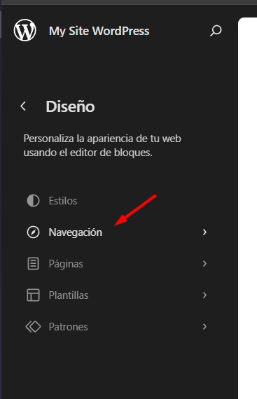 Para ubicarla debes ir al apartado de Apariencia -> Editor y allí encontrarás el apartado de navegación