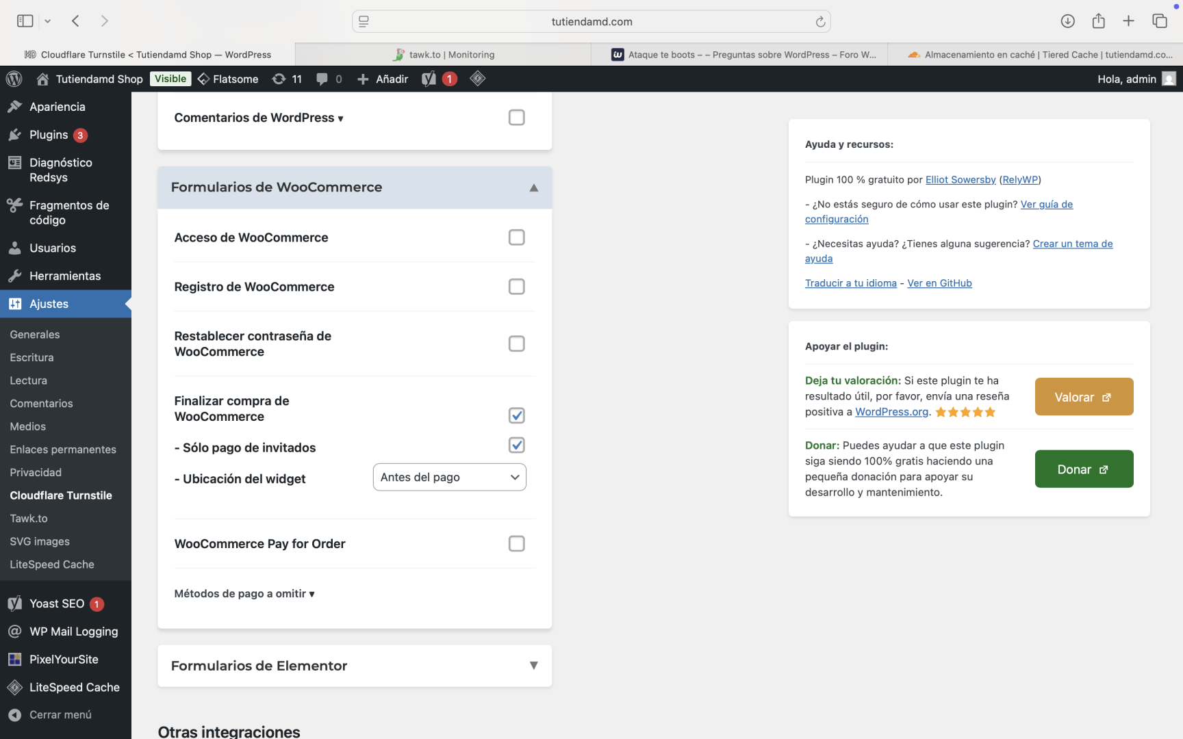 Buenos días, llevo unos días recibiendo pedidos masivos falsos por boots. Siempre es la misma direccion y diferentes nombres, tlf y correos, estos últimos datos reales. Los pedidos todos son con la opción contra reembolso, siempre es el mismo producto he cambiado la url del producto, fotos y demás, ahora han empezado con otro más. Ya pobré recapcha v2 y el v3, pero el v2 me generaba muchos carritos abandonados el v3, como entren mediante un link que sea de una red social o use vpn, bloquea directamente. He estado leyendo sobre Cloudflare Turnstile dicen que funciona bien, pero no quiero que afecten las ventas ya que con este tipo de pg ya baja. La solucion rapida es quitar el contra reembolso y listo, que tambien lo he probado e intentan hacerlo por paypal pero no se efectúa se queda pendiente. ¿Hay algo que detecte este tipo de boots? en el tablero de tawk.to no se ve, algo recibes un pedido y no ves en tawk.to y no hay ningún visitante.