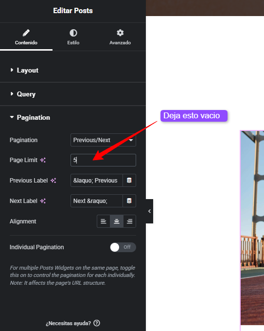 Una vez editado en la sección de la paginacion en limite de paginas deja la cantidad vacia