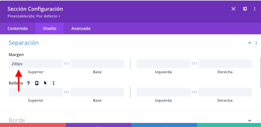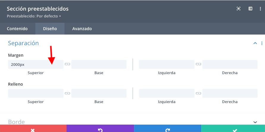 .- Modifica el margen de separación hasta conseguir la posición deseada:
