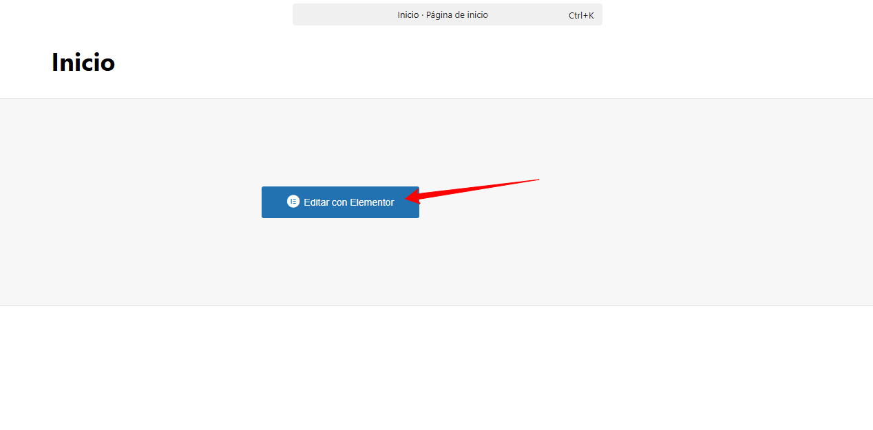 Una vez dentro de este pulsa en el botón de editar con elementor y espera que cargue el constructor, esto te mostrara una vista previa con todos los elementos de tu pagina