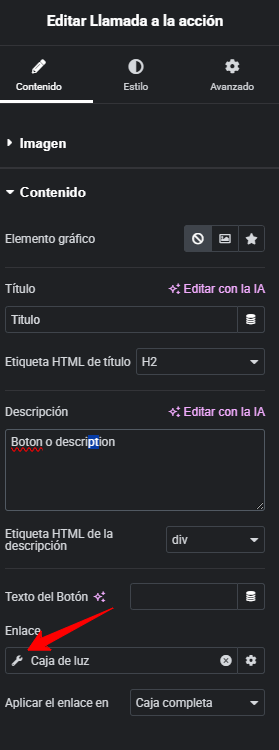 Debes ir a la sección donde está la carta y pulsar editar el elementor donde aparece la carta que quieres editar, esto mostrara los ajustes de este elemento como tal