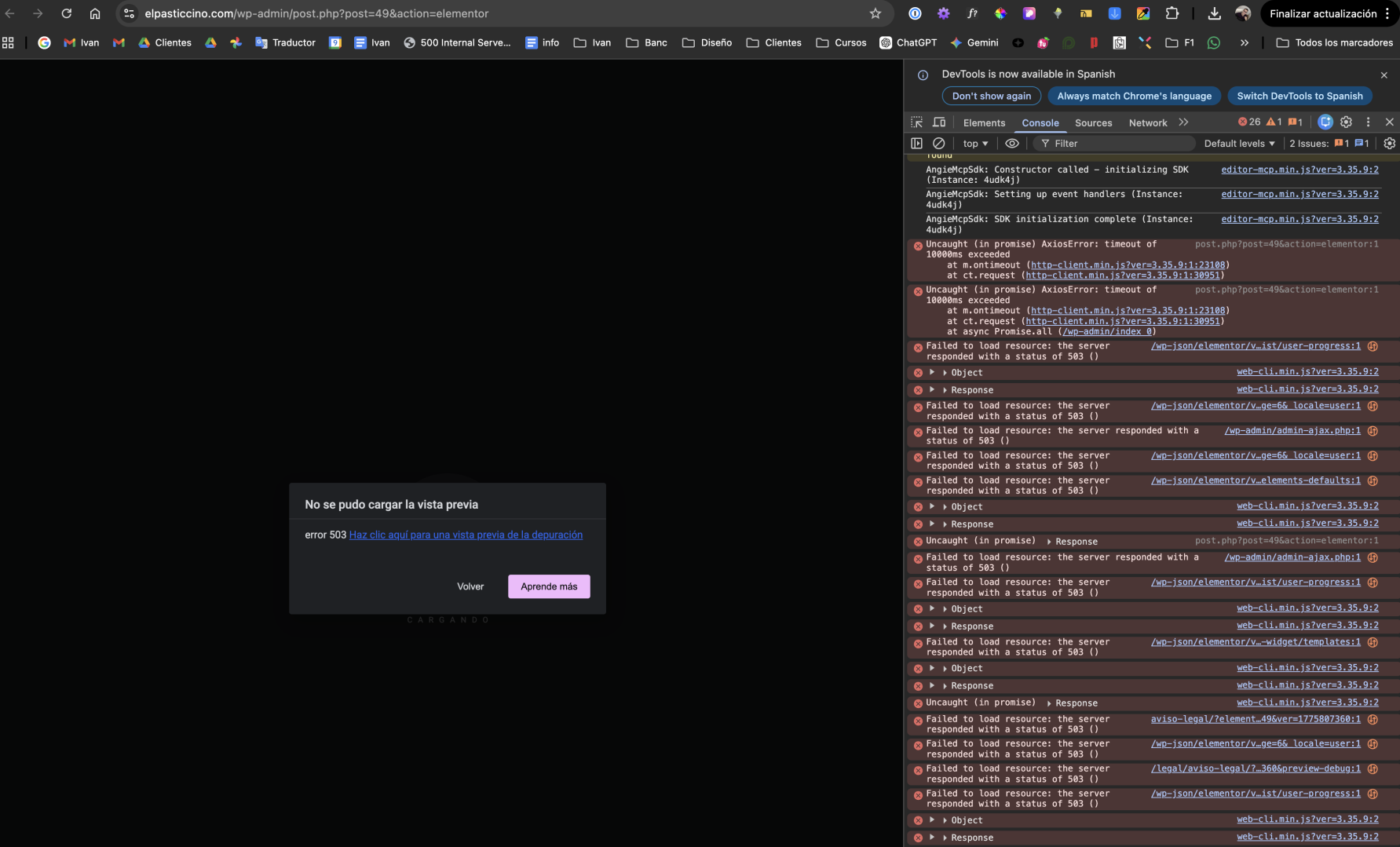 Por eso, aunque visualmente el editor acaba mostrando errores 503, el origen real parece estar en ese flujo de Elementor Cloud Library / screenshot proxy, y solo ocurre con WPML activo.
