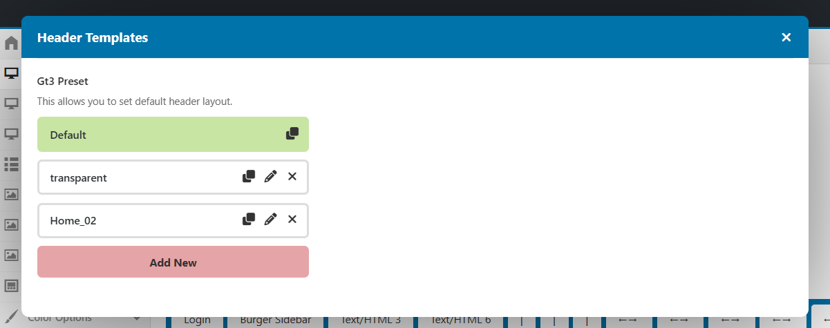 Los estilos predefinidos pueden ser editados desde las opciones citadas en la documentación: Theme options -> GT3 Header Builder -> Select Preset