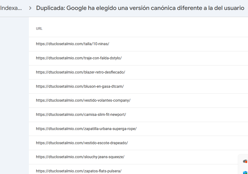 Por otro lado, lo que te indica de las páginas duplicadas o canónicas se muestra cuando Google detecta variaciones o páginas muy parecidas, esto puede ser algo común ya que WooCommerce puede generar tallas o colores, debes verificarlas URL cuál es tu página principal e indicar cuál es la canónica → Contenido solo visible a usuarios registrados