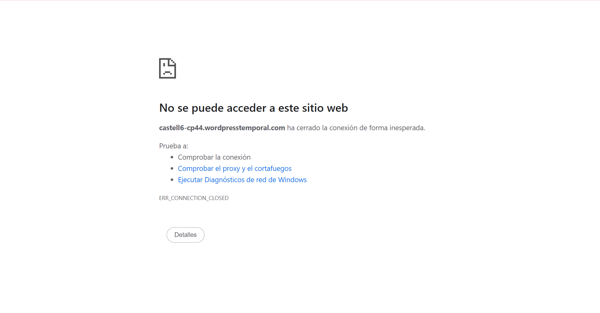 castell6-cp44.wordpresstemporal.com ha cerrado la conexión de forma inesperada.