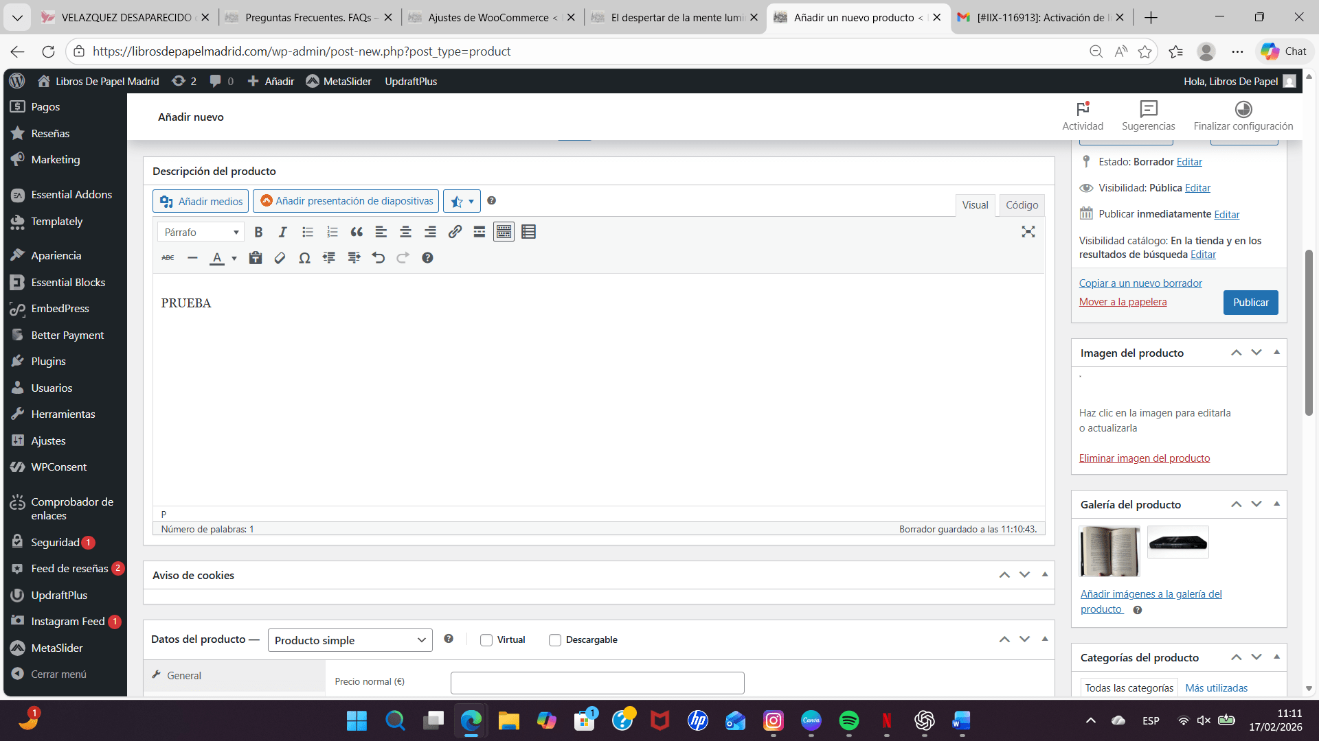 Hola, desde el Departamento de Sistemas (Ticket #IIX-116913) me han indicado que el problema por el que no puedo ver la imagen de producto  de en mi WordPress ni usar el botón de usar imagen en  categorías es que tengo mal definida la ruta de la galería de medios (upload_path). Me han remitido al foro para que me ayuden a corregirlo de forma segura. ¿Podrían indicarme cómo hacerlo o revisarlo?