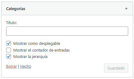 Adicionalmente, nos comentas esto, pero no comprendemos del todo puedes indicarnos dónde mirar? ¿A qué te refieres con que ninguna aparece bien? Con respecto a tu sidebar, puedes quitar el menú si ingresas en Apariencia > Widgets. Aqui buscas el widget relacionado al sidebar de tus entradas, debes tener activas las categorias, puedes asignarlo como desplegable si no quieres que ocupe mucho espacio.