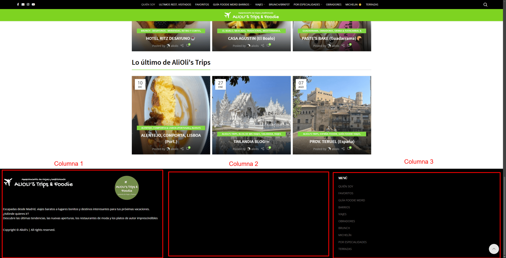 los footer cuales son? ¿donde se ven? supongo que en la parte baja de la página, pero ¿Column 2 dónde se muestra?