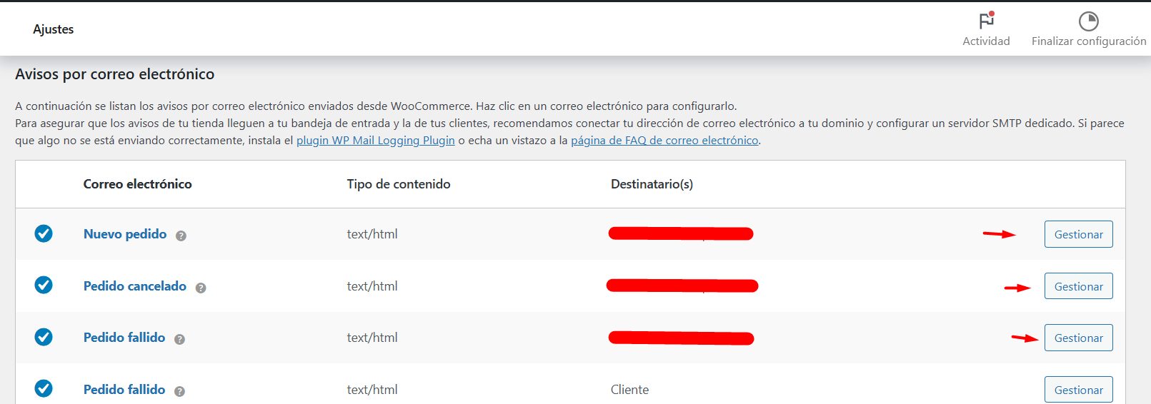 - Los ajustes del plugin son incorrectos (ajustes de SMTP erróneos, configuración de del servicio de envío no válida, etc.).