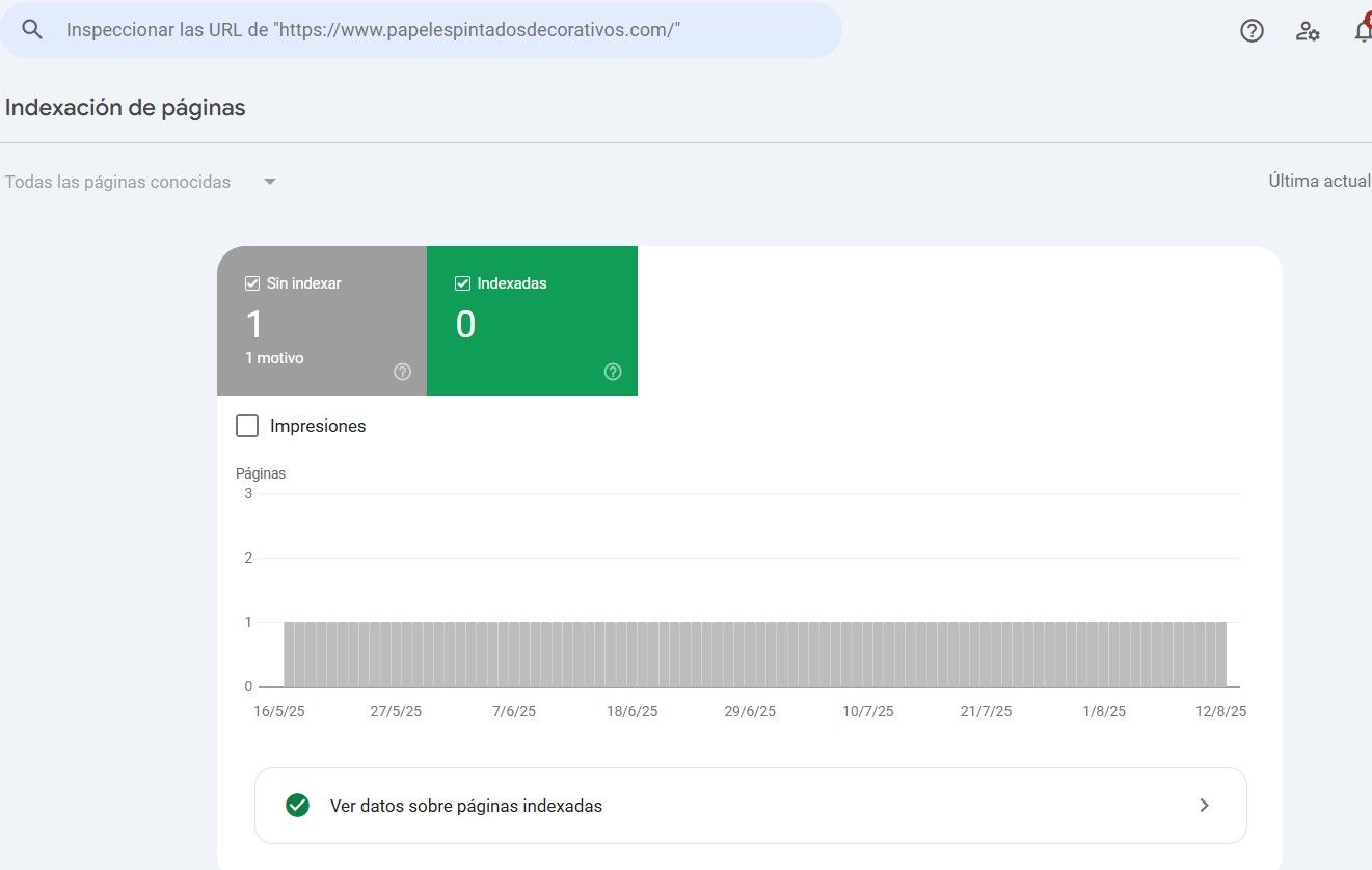 Ya que estamos me aprovecho un poco mas de ti. En google search console aparece que nuestra web no tiene ninguna url indexada.