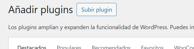 .- Accede a WordPress -> plugins -> Añadir plugin