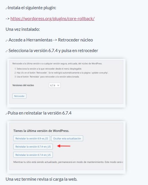 todo lo que dice ahí de "retroceder al núcleo" etc etc. no he podido hacerlo porque no está la versión que me indica 6.7.4. no la veo.