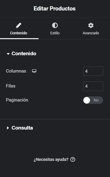 Este te da la posibilidad de seleccionar columnas y filas, y en donde indique consulta, puedes incluir o quitar de la visualización productos o categorías que quieres.