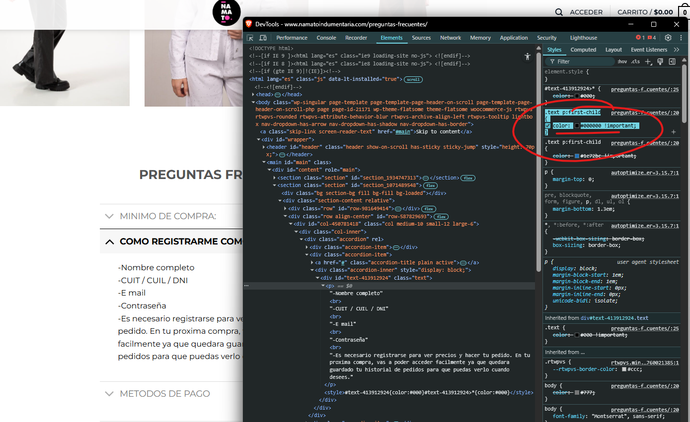 Veo que tienes unas clases añadidas en tu sitio web que está configurando los textos en blanco, debes revisar esta clase ya que es la que está afectando el texto, por ejemplo si quieres se vea deberá estar como