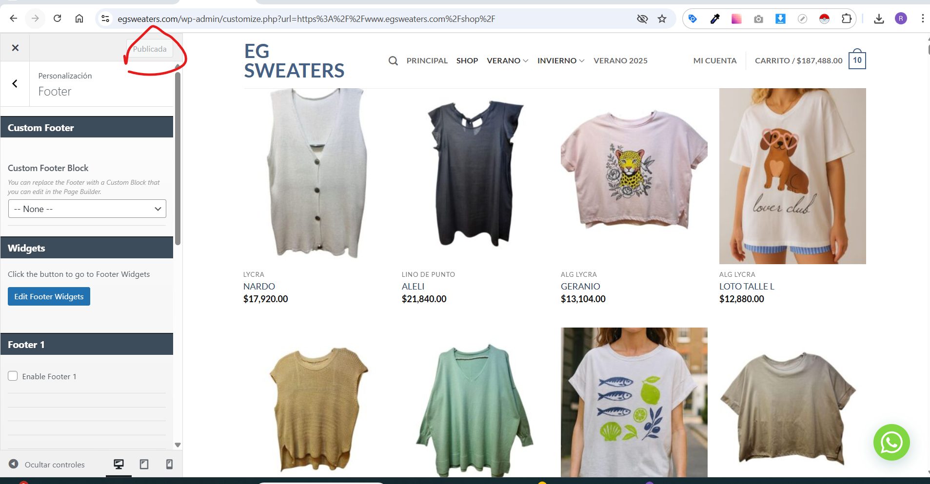hola que tal yo de nuevo, a la hora de querer personaliar la web, me pasa esto... no es no me deja publicar las actualizaciones que quiero hacer como ven en la foto, creo que sigue infectada esta web,... ustedes que dicen hay algo que se pueda hacer?
