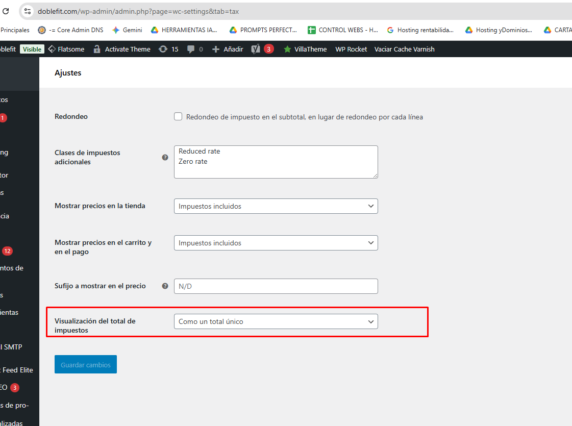 Esto dejará de mostrar el desglose de los impuestos si el total de impuestos es 0