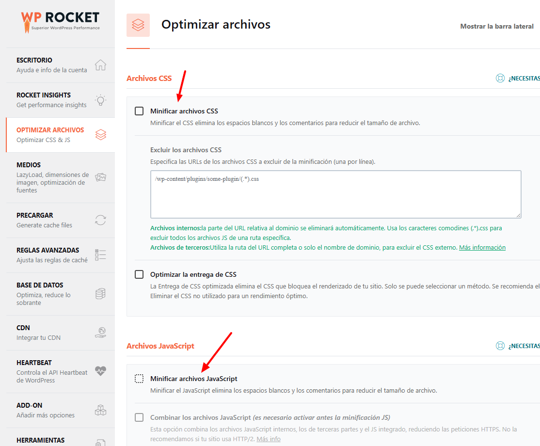 Esto sucede cuando se nos va de las manos el tema de la compresión para buscar mejorar la velocidad del sitio. Ingresa a WpRocket > optimizar archivos. Aquí desactiva un momento la compresión y optimización de CSS y JS: