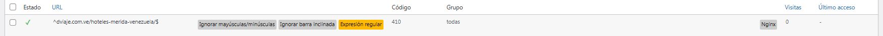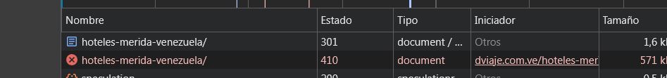 https://dviaje.com.ve/hoteles-merida-venezuela/ - por ejemplo, hace 301 le pone la www y queda https://www.dviaje.com.ve/hoteles-merida-venezuela/ y da error 410 .