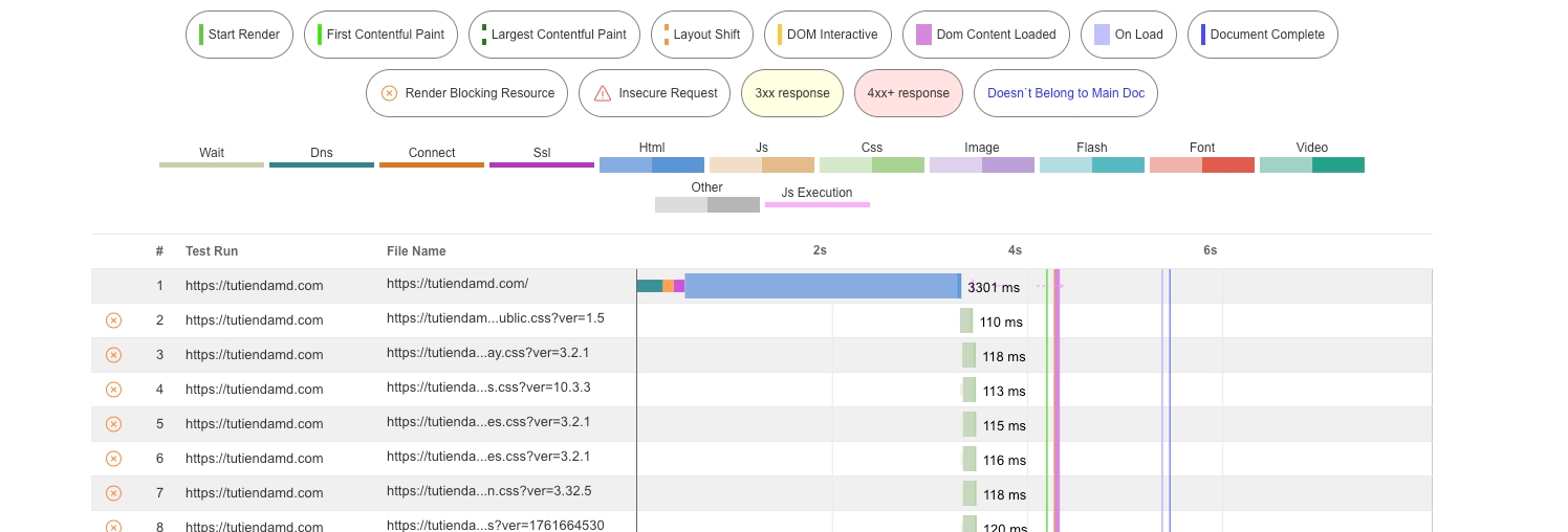 Dicho esto, TTFB (Time To First Byte) mide el tiempo desde que el navegador envía una solicitud hasta que recibe el primer byte de respuesta del servidor y revisando la mayor carga la tienes en el Banner: