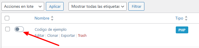 Si quieres desactivarlo solo tienes que hacer clic en el desplegable a la izquierda de cada código: