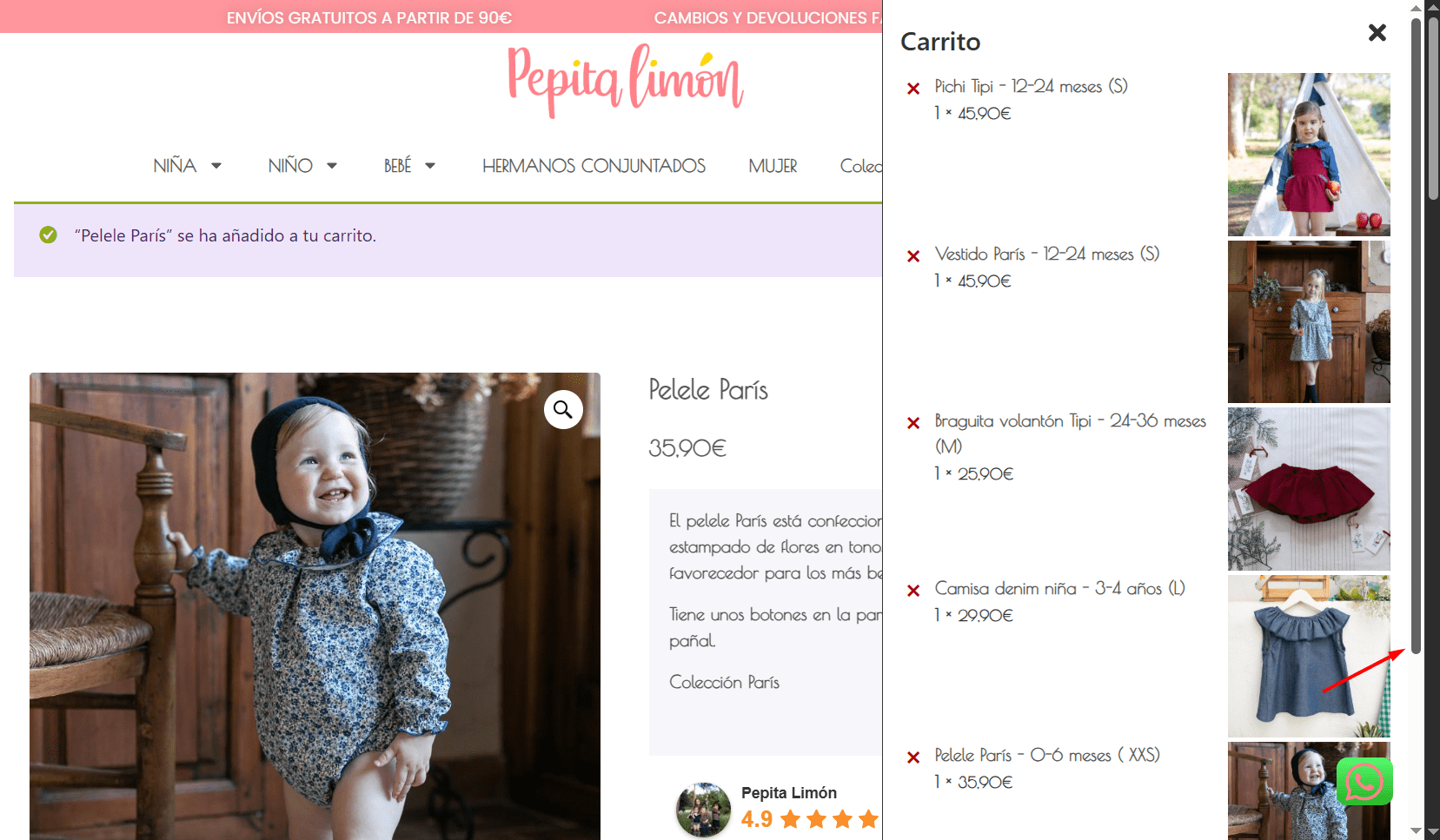 Para que aparezca una barra de scroll en la vista desplegable del carrito como la siguiente: