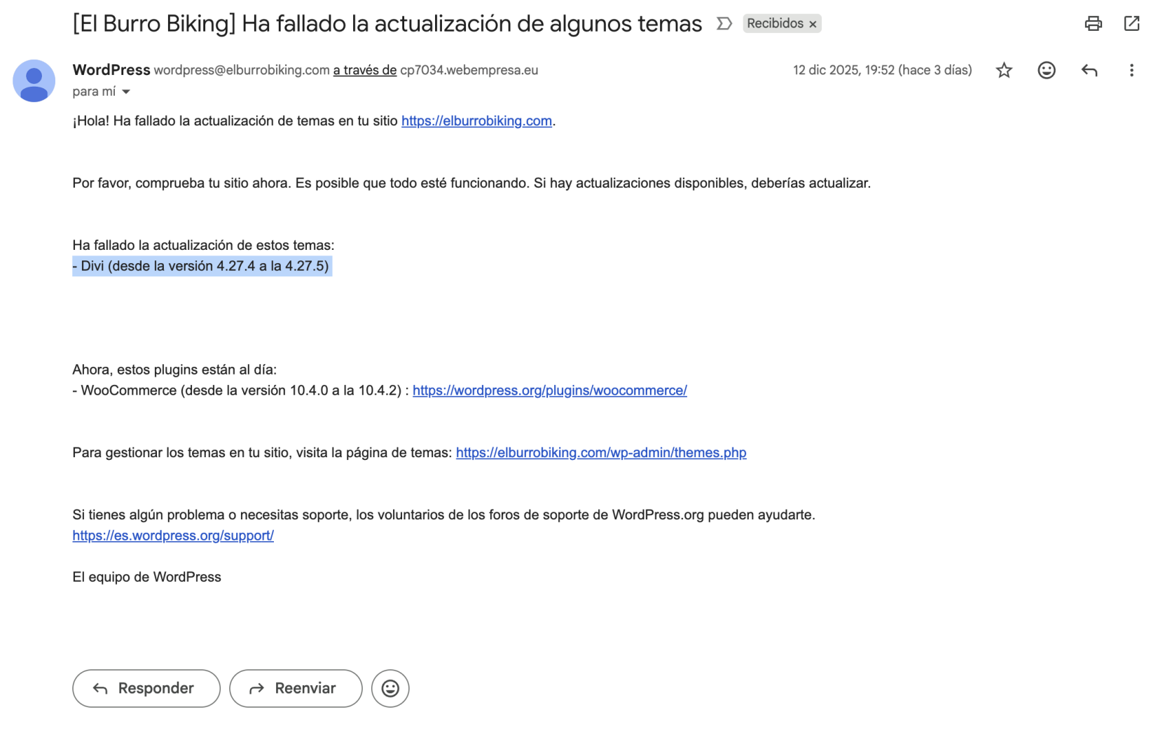 Hola, durante una semana WordPress ha intentado actualizarse dando error. Abrí un ticket de soporte y esto es lo que me dijeron: