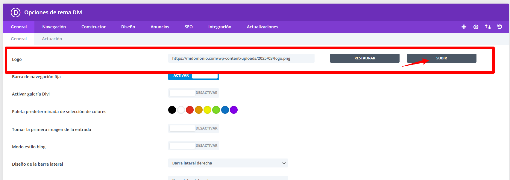 Una vez lo seleccionas guardas los cambios y esto debe mostrar tu nuevo logo en el sitio web